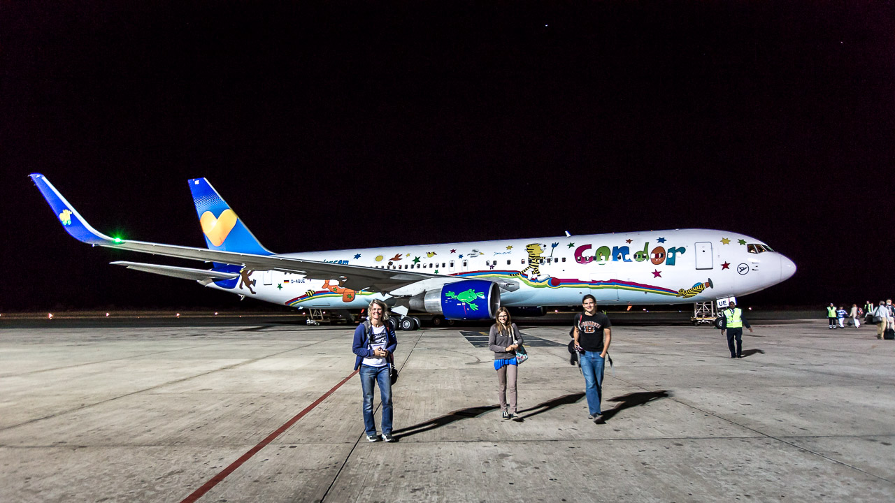 8.8. "Unsere" Boing 767, Condor von Windhoek nach Frankfurt ( 23 mm 1/30 Sek. bei f / 3,5 ISO 2500 )
