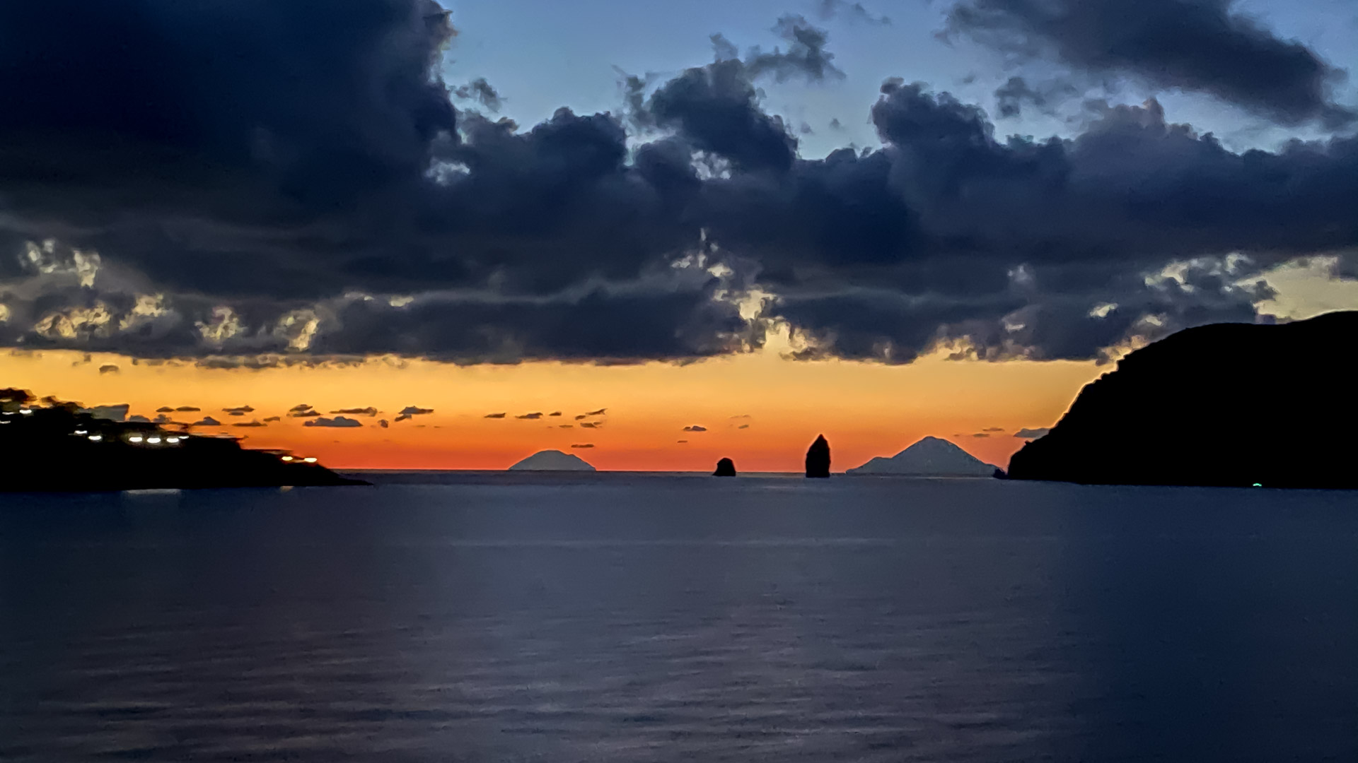 Die Fähre kommt 5 Minuten zu spät, und dann geht ein 3D-Puzzle mit Autos los. Kubisch-dichte Raumpackung … und das ganze noch so, dass in Vulcano auch noch die Autos, die dort raus wollen, vernünftig stehen. Die Fähre ist so voll, dass zwei LKWs draußen vor der Luke stehen. In Vulcano noch einmal große Rangiererei … am Ende sind wir erst um 19:45 Uhr in Milazzo … aber als zweite von der Fähre runter.