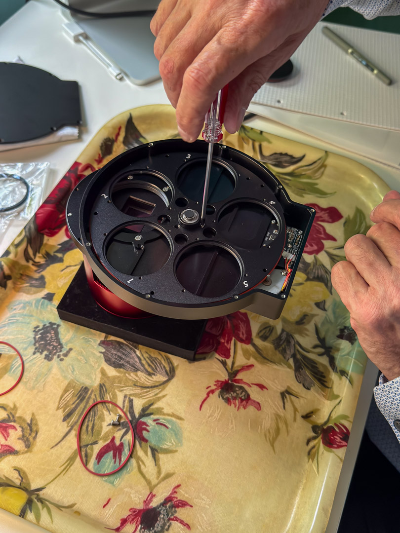 Ein Bastelnachmittag folgt, die Montage der Filter und des Filterrads erfordern ungewohnte Feinmotorik. Sehr hilfreich waren die Tipps auf der Messe, wie ich die Verkabelung noch weiter optimieren kann: