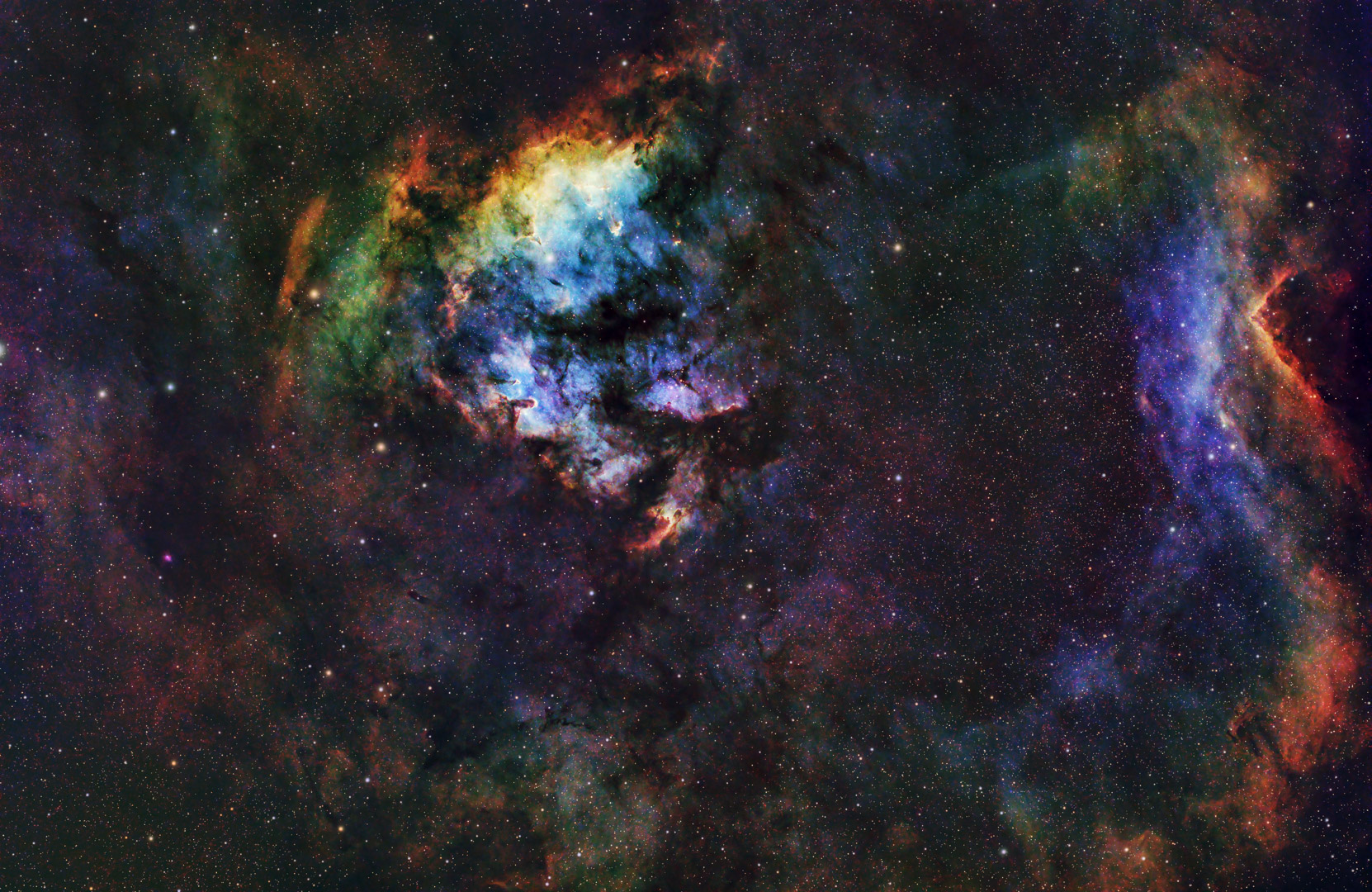 26.1.2026 - NGC 7822 Teddy Bear Nebula, SHO DBE, 1h RGB, 5h Ha, 10h S2, 15h O3 im Okt/Nov 2025